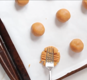 - Utiliser une fourchette pour appuyer sur les sommets des biscuits et former une croix