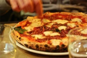 Sa pâte à base de farines bio, qu’il laisse fermenter pendant 24h, est élaborée uniquement pour faire de la pizza et sa cuisson au four lui offre une texture croustillante exceptionnelle. Ses garnitures biologiques sont scrupuleusement choisies : tomates , mozzarella Di Buffala et basilic et herbes fraiches, fromages et charcuteries de qualité supérieure, … Bluffant.