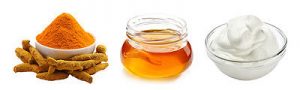 - Curcuma: il est très efficace contre l’acné car il contient des propriétés antibactériennes. Il réduire les cicatrices d’acné, taches de vieillesse. Le curcuma possède d’extraordinaires propriétés anti-inflammatoires, antiseptiques, antibactériennes et anti-âge, ce qui en fait un excellent ingrédient du masque.