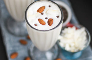 Un milkshake végétal très doux avec une texture onctueuse et son goût d’amande, vous allez adorer! Vous pouvez bien sur choisir d’autres fruits, que le banane que j’aime beaucoup car il donne beaucoup d’onctuosité à cette boisson. Vous pouvez essayer aussi avec de la poire quand c’est la saison. Ingrédient …