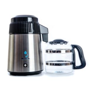 Pour se débarrasser de tous les éléments indésirables d’une eau, la distillation  me semble être plutôt ultra efficace! Dans un article précédent, j’ai proposé une rapide analyse sur 2 types d’appareil avec des cuves en inox de 4L, sans aucun plastique en contact prolongé avec l’eau chaude et une option avec carafe en verre. Vous trouverez tous les détails dans cet article.