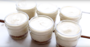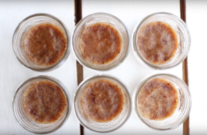 - Verser la crème obtenue dans les petits bocaux sur le biscuit (précédemment préparé) jusqu’à ras bord.